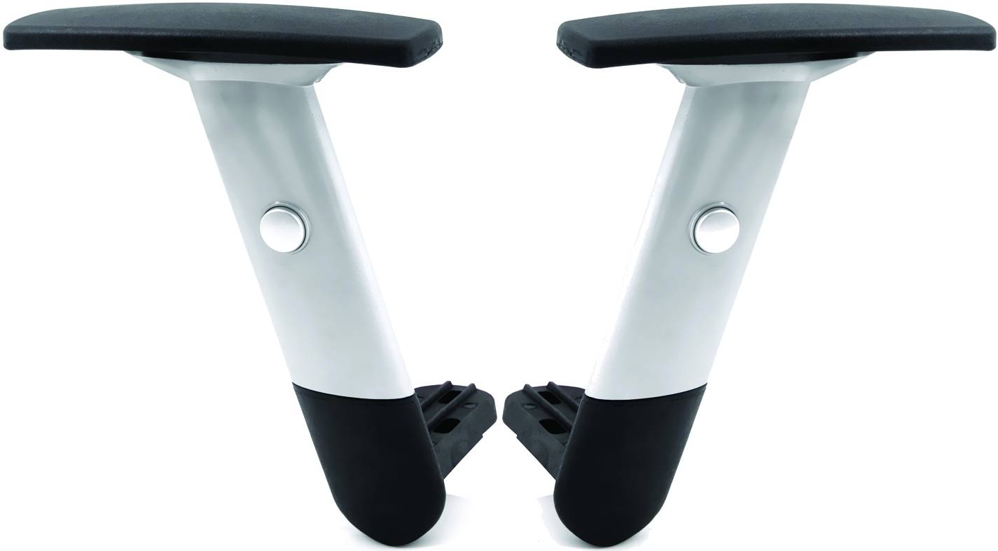 • Пара белых т-образных пластиковых подлокотников 682Т для офисного кресла.