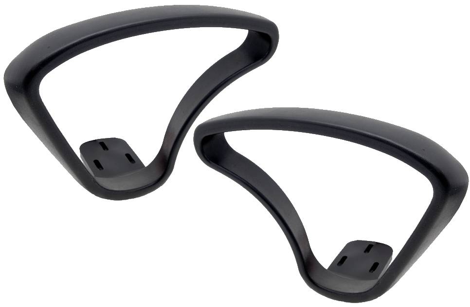 • Пара каплевидных пластиковых подлокотников для офисного кресла.